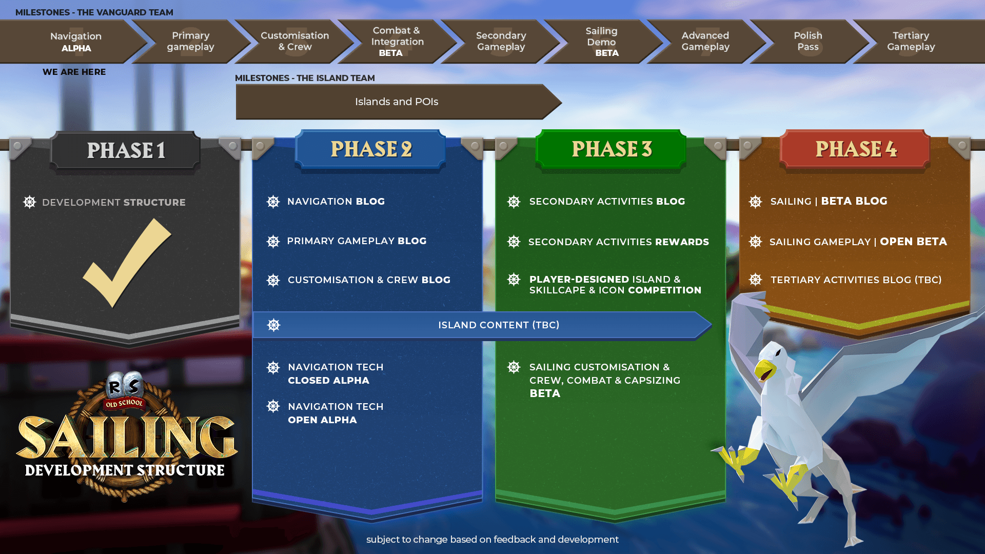 The development roadmap now looks something like this. You can see that the Skill Cape and icon competition has moved into Phase 3 while Navigation and the Tech Alpha has been brought forward.