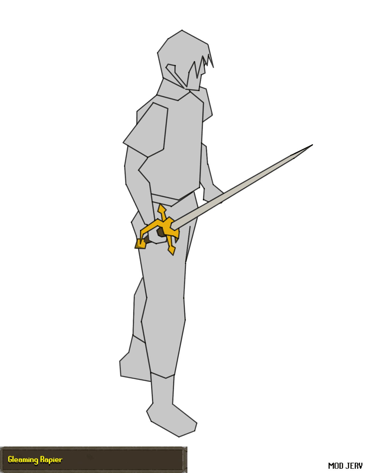 Essentially, the Gleaming Rapier is the stab equivalent of the Zombie Axe, sitting between the Dragon Sword and the Zamorakian Hasta as a new mid-level stab weapon.