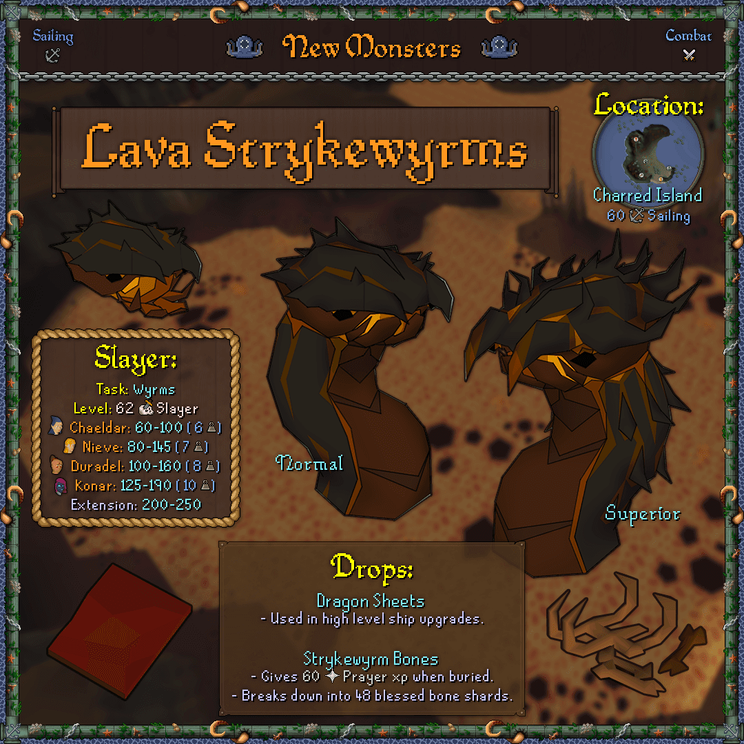 We appreciate that players might be concerned about Sailing's impact on the existing Slayer meta. We've carefully balanced all of the new Slayer tasks included within this blog to ensure that the new additions to Slayer feel new and exciting, but they won't shake up the current status quo too much. In the survey linked below, we'll be asking the community how you feel about these tasks. Please rest assured, we're willing to make adjustments based on community concerns. You can let us know how you feel about these tasks (weightings & quantities) in the survey linked at the bottom of the blog. Be sure to tell us if you would like us to make adjustments before we poll this content!