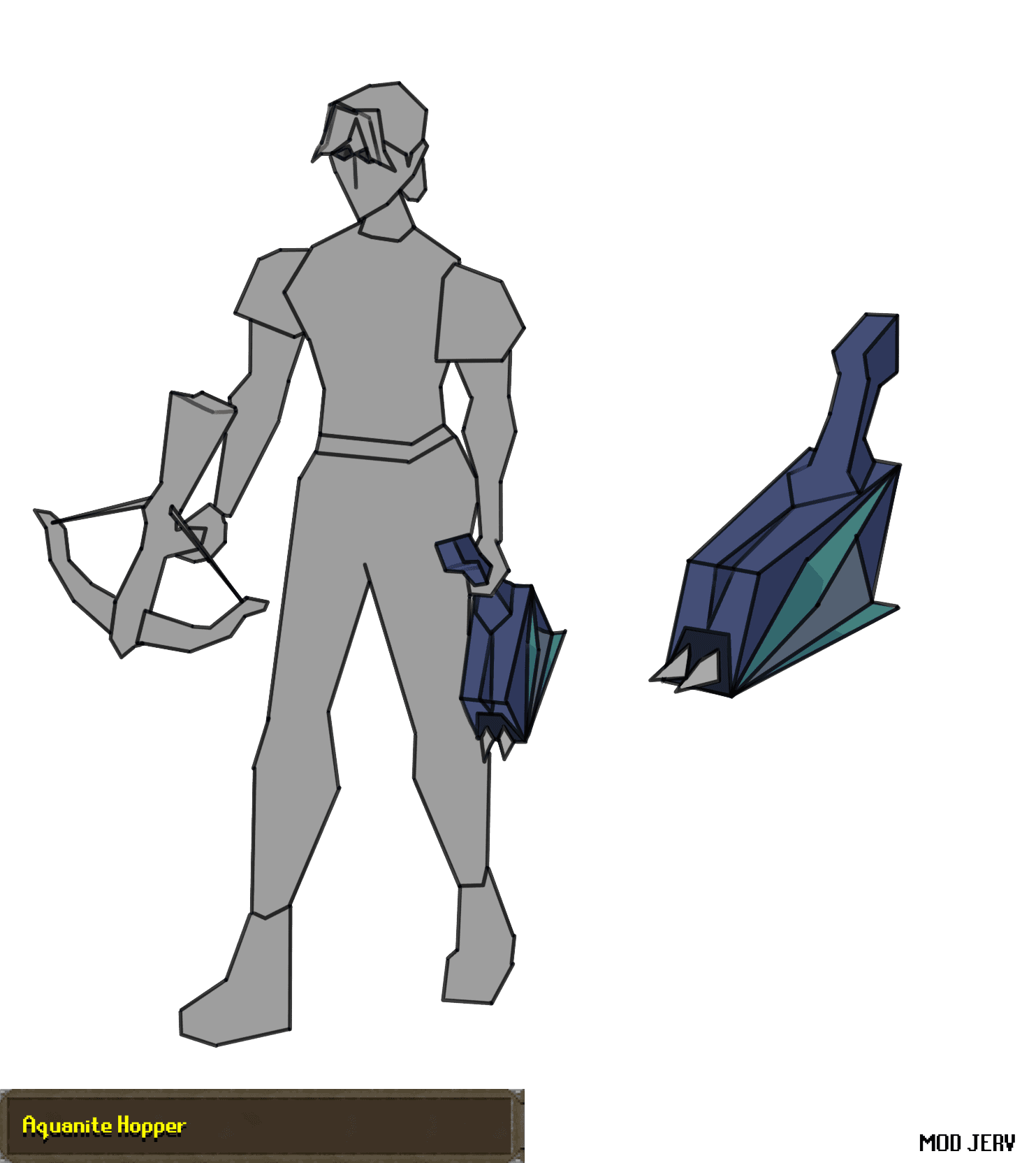 Dev Comment: Currently, most Ranged off-hands have defence (such as shields) or modest accuracy. The Aquanite Hopper should add a noticeable increase to your damage output, opening up more options to use crossbows, particularly for mid-game accounts where the defensive capabilities of a shield aren't required, but it won't replace the Twisted Buckler as the existing best-in-slot Ranged option at the top-end.