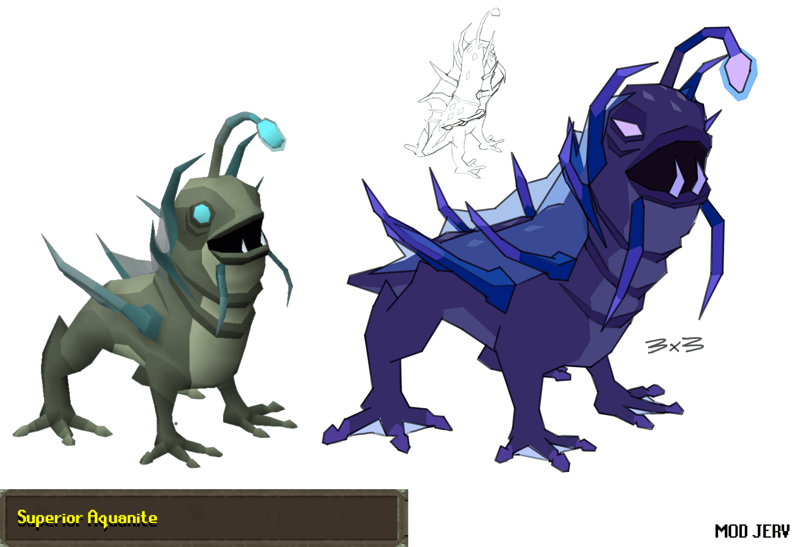 The Aquanites will be their very own, unlockable Slayer task. They have naturally high stats, but you'll be able to remove their advantages. We'll leave you to work out how! They also have superior variants, Elder Aquanites, with another unique special mechanic. We won't spoil too much, suffice to say they will test your ability to swap prayers consistently.