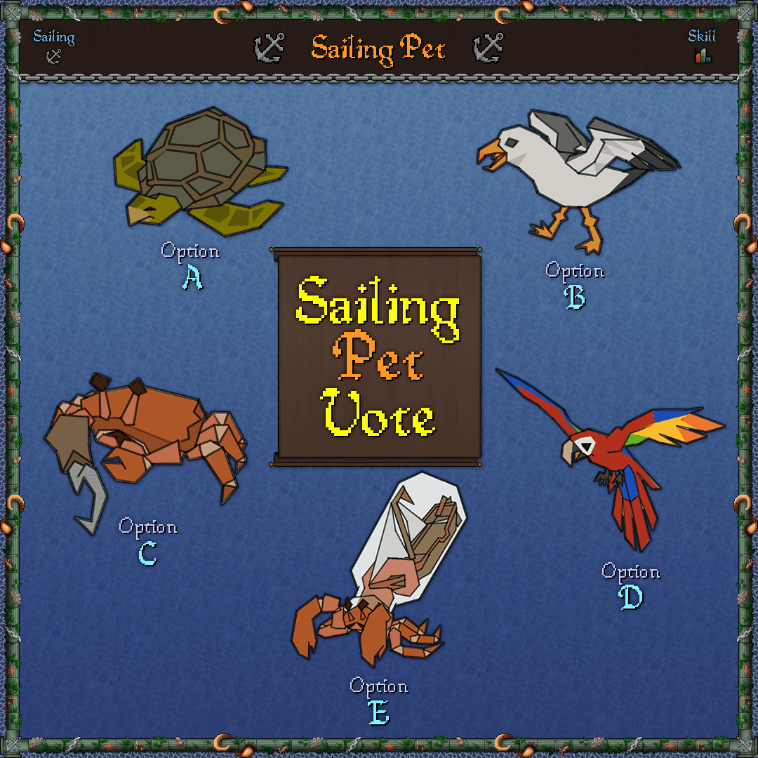As promised, we would like to offer the community the opportunity to vote on what pet you'd like for Sailing. Without further ado, take a look at our options: