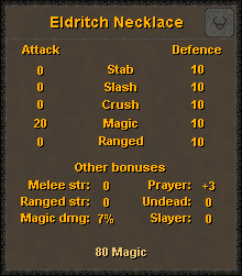 Should we add the Eldritch Necklace, an upgrade to the Occult Necklace, as described in the blog? The Eldritch Necklace is created by using a new, consumable item, the Demonic Mark with an Occult Necklace. The Demonic Mark will be available from the Delve Boss drop table and will be tradeable. The Eldritch Necklace will be untradeable.